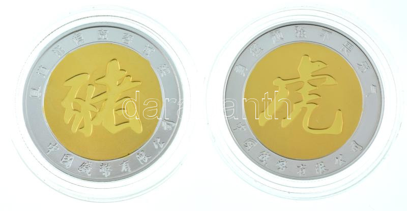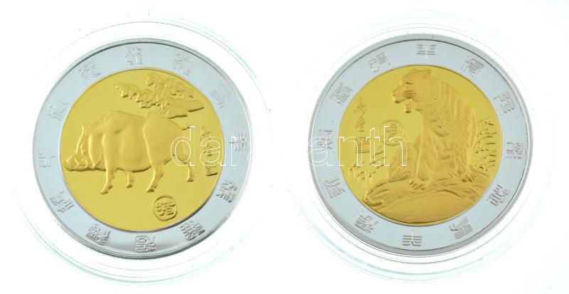 Beschreibung: Kína DN "Tigris" + "Vaddisznó" (2xklf) aranyozott-ezüstözött emlékérem kapszulában (40mm) T:PP
