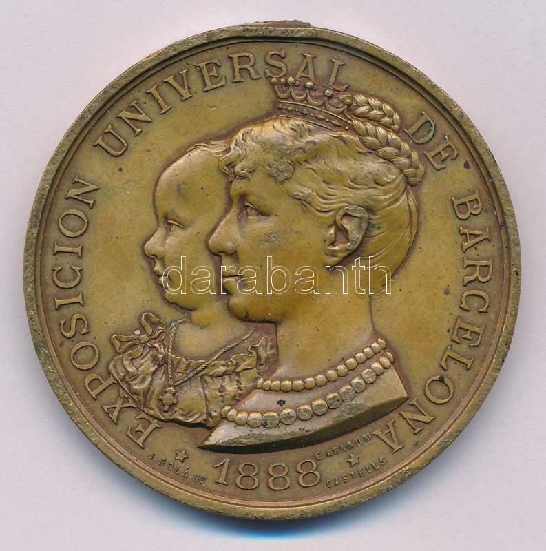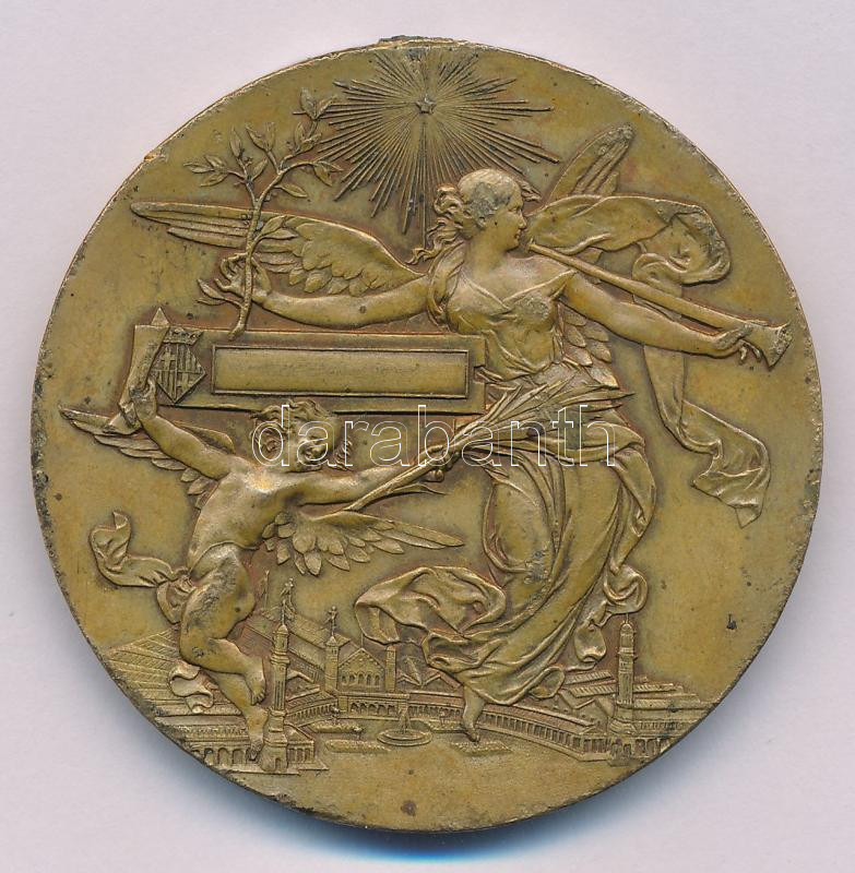 Spanyolország 1888. "Barcelonai Egyetemes Világkiállítás" bronz díjérem szalagon, "E. Arnaun & Castells" gyártói jelzéssel (50mm) T:XF de több ph. és fülhiány