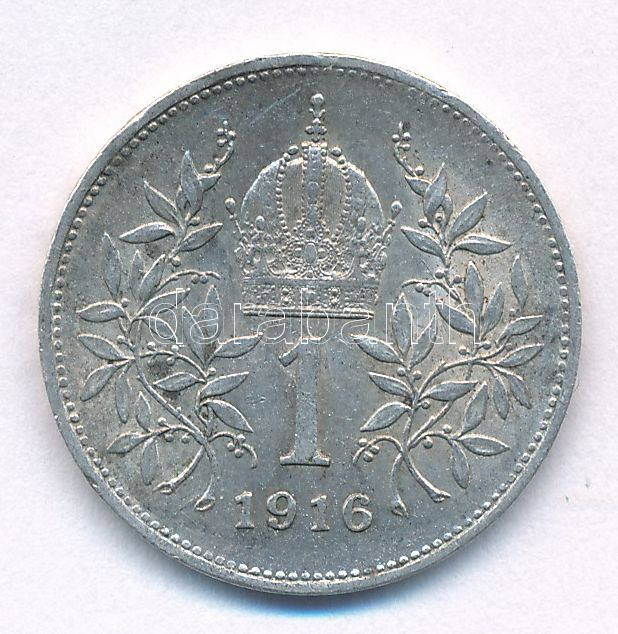 Austria 1... https://www.darabanth.com/de/477-Fernauktion/477.0/Numismatik/Weltweit-Munzen~500017/Ausztria-1916-1K-Ag-Ferenc-Jozsef-TXF-kis-ph-Austria-1916-1-Corona-Ag-Franz-Joseph-CXF-sm~II3244057