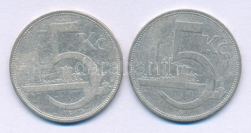 Beschreibung: Csehszlovákia 1929-1930. 5K Ag (2xklf) T:VF