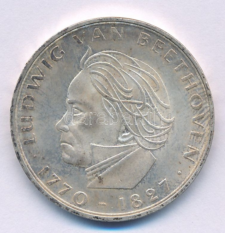 NSZK 1970F 5M Ag "Ludwig van Beethoven" T:AU, XF patina FRG 1970F 5 Mark Ag "Ludwig van Beethoven" C:AU, XF patina Krause KM# 127