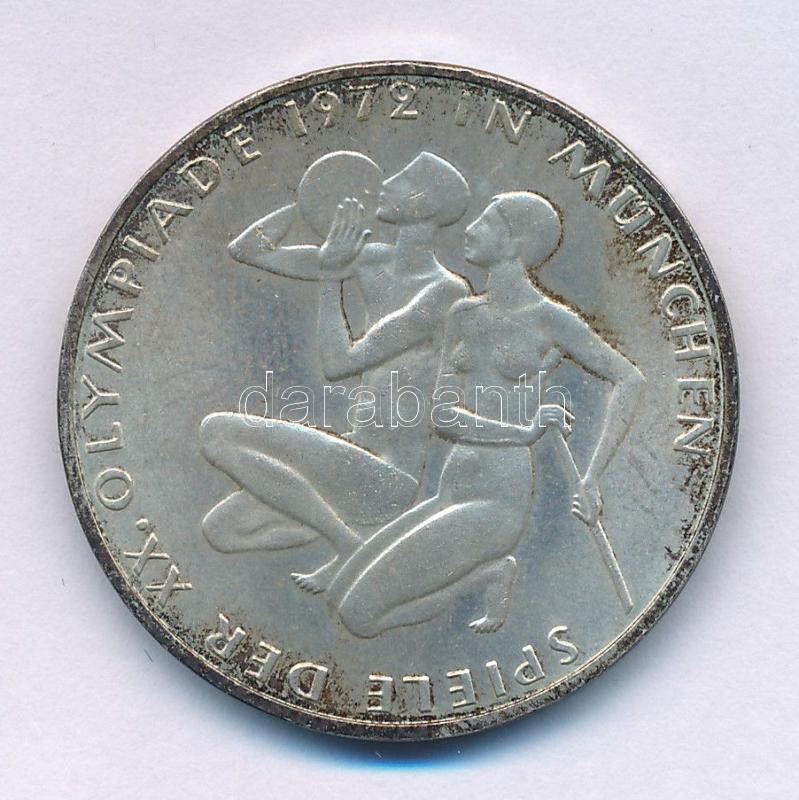 NSZK 1972G 10M Ag "Müncheni Olimpia - térdelő atléták" T:AU patina FRG 1972G 10 Mark Ag "Munich Olympics - Athletes kneeling" C:AU patina Krause KM#132