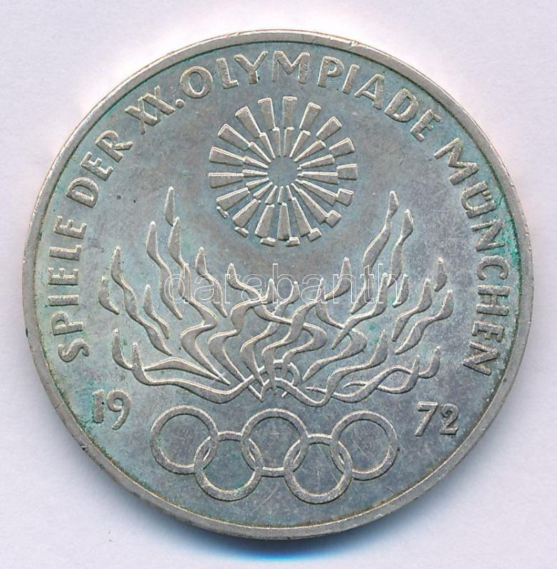 NSZK 1972J 10M Ag "Nyári Olimpiai Játékok München / Olimpiai Láng" T:AU,XF patina FRG 1972J 10 Mark Ag "Olympic Games Munich / Olympic Flame" C:AU,XF patina Krause KM#135