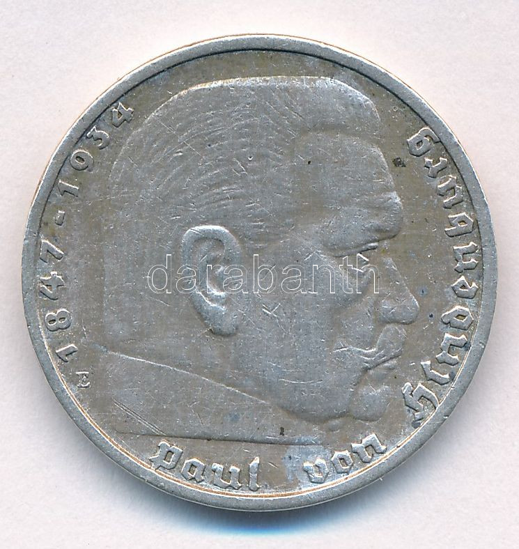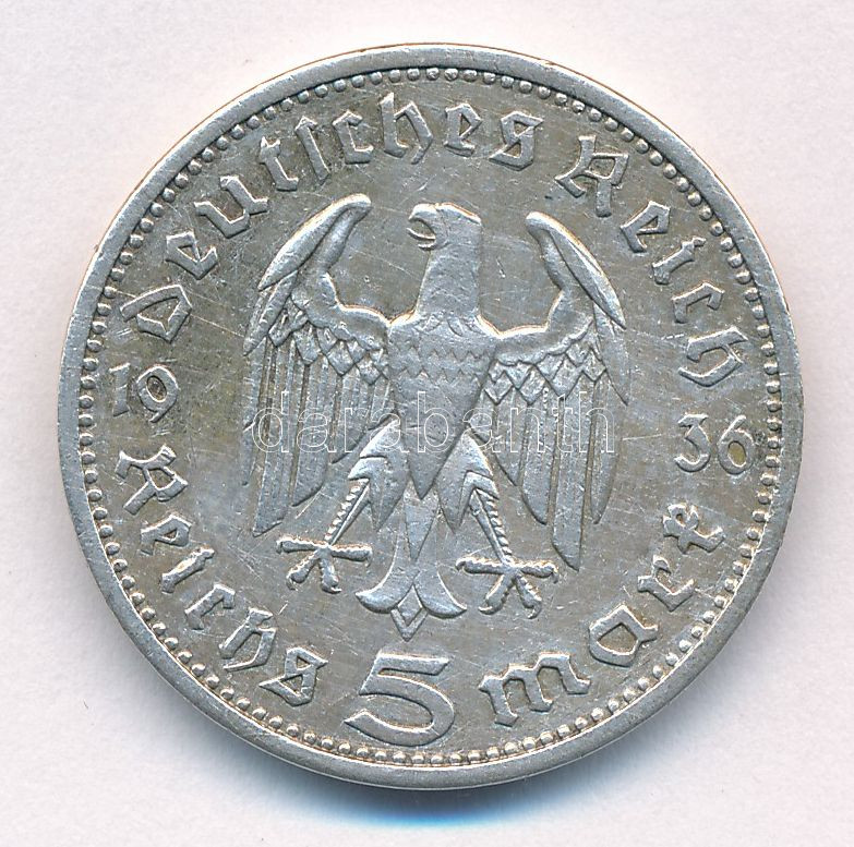 Német Harmadik Birodalom 1936E 5M Ag "Paul von Hindenburg" T:XF ph., patina