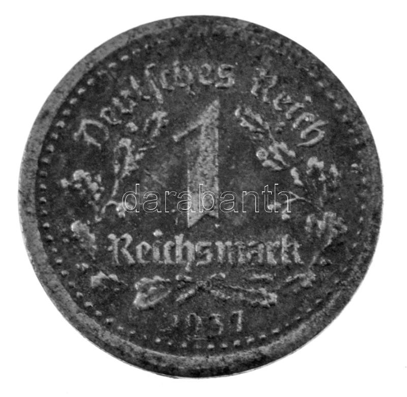 Német Harmadik Birodalom 1937D 1M fém minipénz "Gemeinnutz vor Eigennutz (A közjó az önérdek előtt)" T:XF,VF German Third Reich 1937D 1 Reichsmark metal miniature coin "Gemeinnutz vor Eigennutz (Common good before self-interest)" C:XF,VF