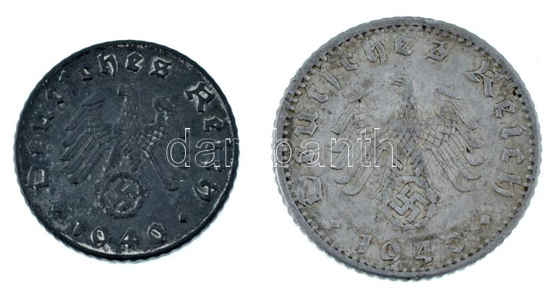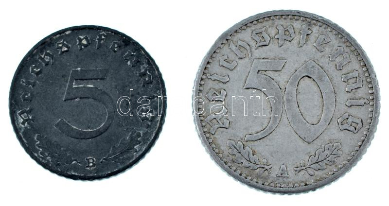 Német Harmadik Birodalom 1943A 50pf Al + 1940B 5pf Zn T:XF-VF patina German Third Reich 1943A 50 Pfenning Al + 1940B 5 Pfenning Zn C:XF-VF patina Krause KM#96, KM#100