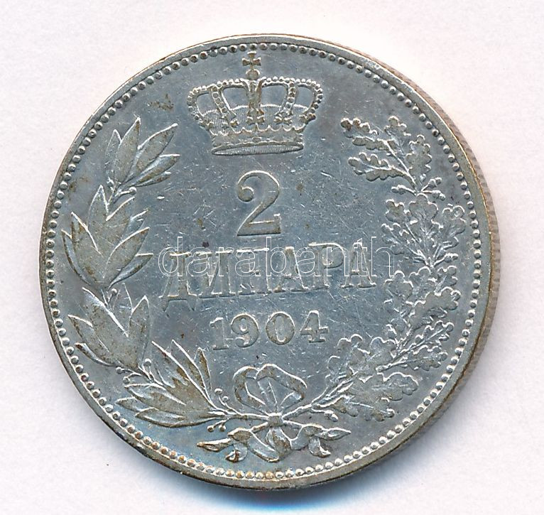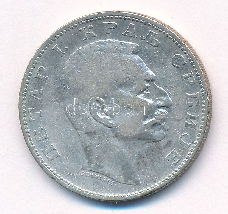 Serbia 1904. 2 Dinara A... https://www.darabanth.com/de/477-Fernauktion/477.0/Numismatik/Weltweit-Munzen~500017/Szerbia-1904-2D-Ag-I-Peter-TVF-Serbia-1904-2-Dinara-Ag-Petar-I-CVF-Krause-KM2326~II3204954