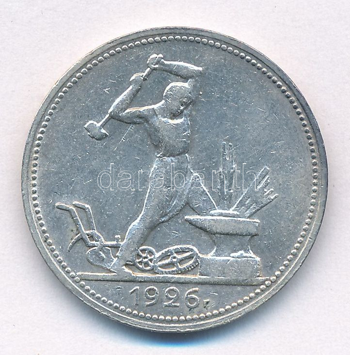 Szovjetunió 1926. 1P (50k) Ag T:AU,XF Soviet Union 1926. 1 Poltinnik (... https://www.darabanth.com/de/477-Fernauktion/477.0/Numismatik/Weltweit-Munzen~500017/Szovjetunio-1926-1P-50k-Ag-TAU-XF-Soviet-Union-1926-1-Poltinnik-50-Kopecks-Ag-CAU-XF-Krause~II3251819