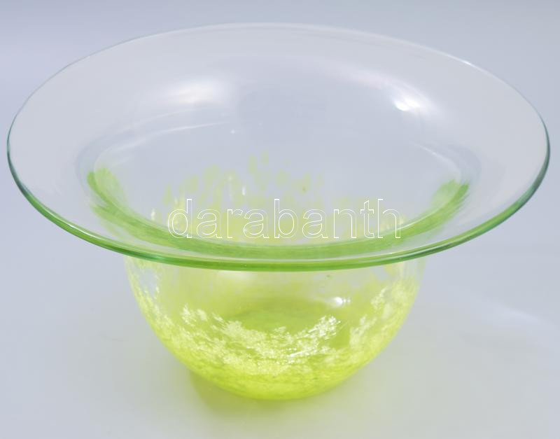 Beschreibung: Karcag Berekfürdői neonzöld krakléüveg kínáló, címkével jelzett, hibátlan, d: 27,5 cm, m: 14 cm