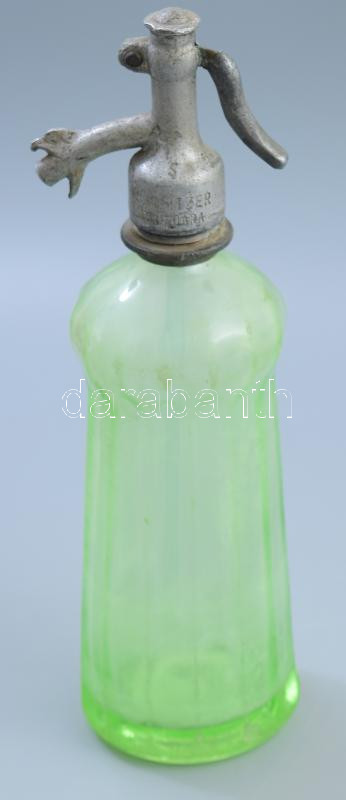 Beschreibung: S. Spitzer Timiosara uránnal színezett bordás szódásüveg, sascsőrös fejjel, pattogzással, m: 30 cm