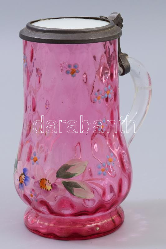 Üveg korsó, ónkeretes üveg fedéllel, kézzel festet 14 cm https://www.darabanth.com/de/477-Fernauktion/477.0/Porzellan-Keramik-Glass/Glaser~1000008/Uveg-korso-onkeretes-uveg-fedellel-kezzel-festet-14-cm~II3242450