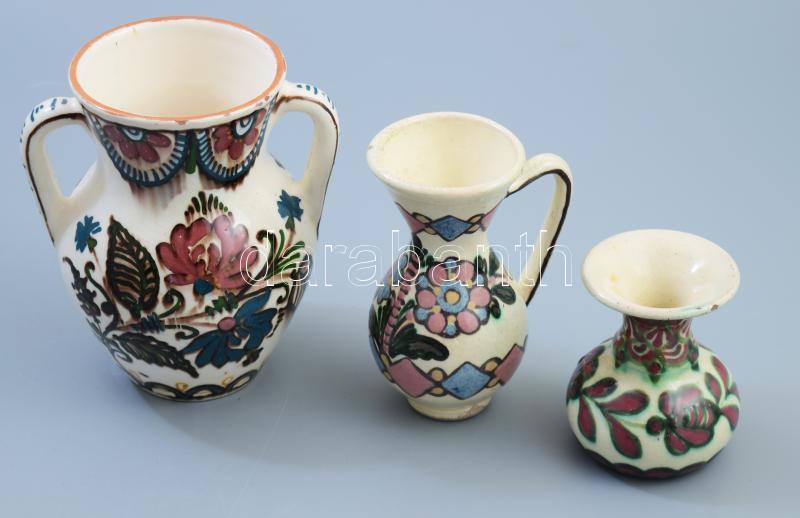 Beschreibung: 3 darab hódmezővásárhelyi kisváza, közte Baán Imre, m: 15 cm alatt
