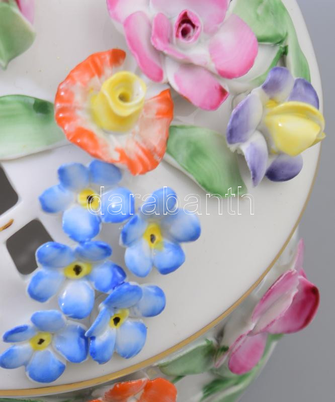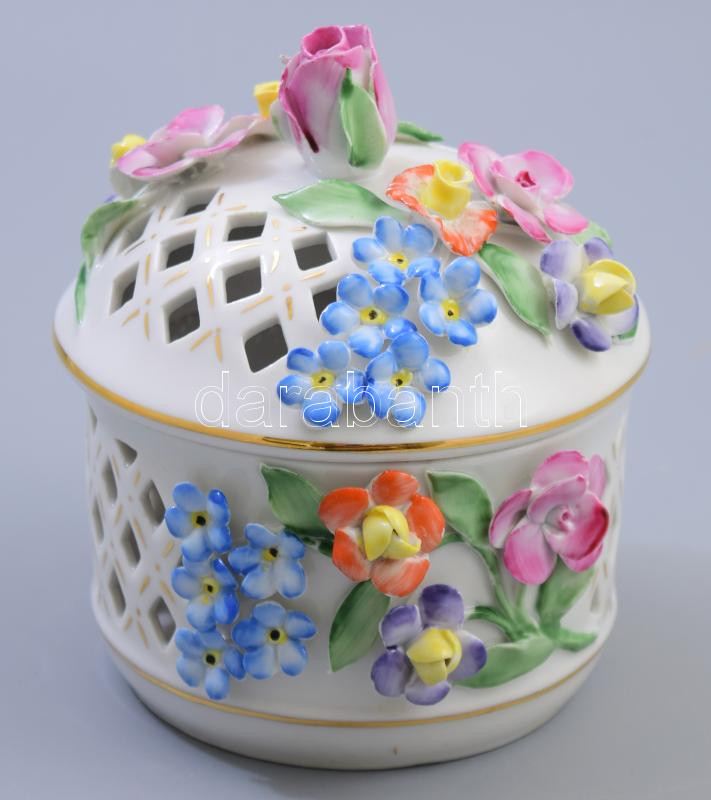 Beschreibung: Russ collection Transylvania áttört porcelán fedeles kínáló. Kézzel festett, jelzett, minimális kopással