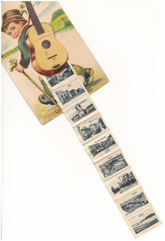 Arad, Leporello túrázó fiúval gitárral a hátán / leporellocard with hi... https://www.darabanth.com/de/478-Fernauktion/478.0/Ansichtskarten/Siebenburgen~1000006/Arad-Leporello-turazo-fiuval-gitarral-a-hatan-leporellocard-with-hiking-boy-and-guitar-fa~II3260923