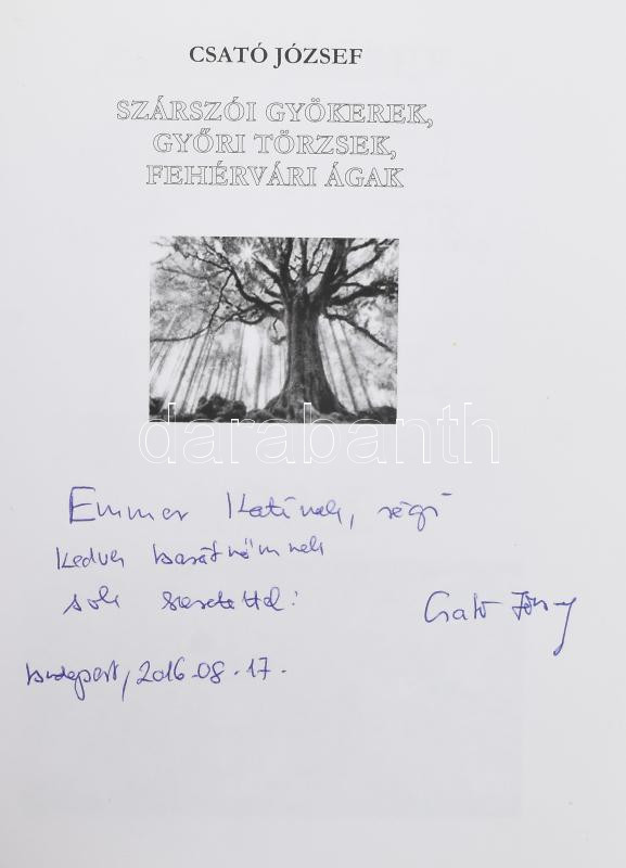 Csató József: Szárszói gyökerek, győri törzsek, fehérvári ágak. DEDIKÁ... https://www.darabanth.com/de/478-Fernauktion/478.0/Bucher/Bucher-Andere-kuriositaten~298/Csato-Jozsef-Szarszoi-gyokerek-gyori-torzsek-fehervari-agak-DEDIKALT-Gyor-2016-Oxygen~II3238523