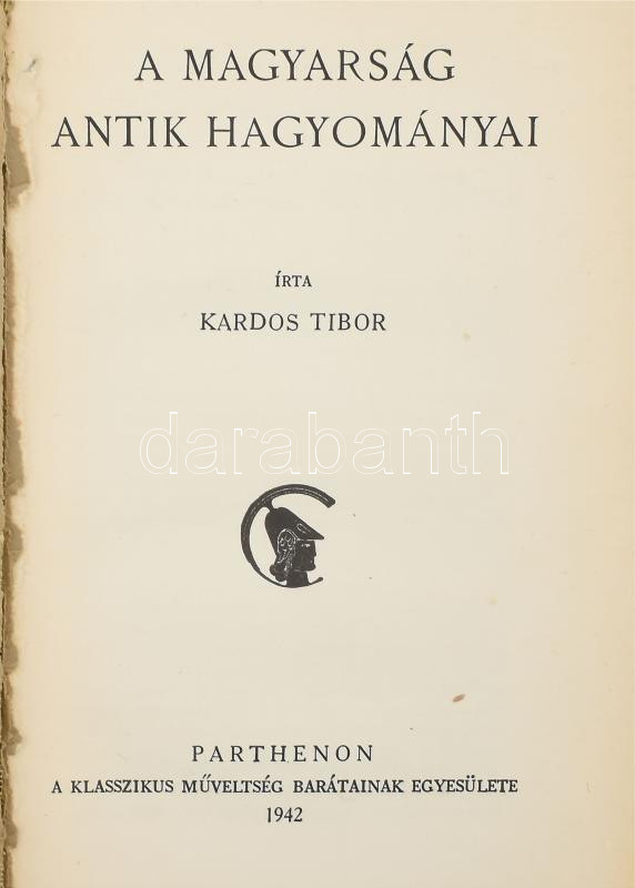 Kardos Tibor: A magyarság antik hagyományai. Pantheon-Tanulmányai 5. B... https://www.darabanth.com/de/478-Fernauktion/478.0/Bucher/Bucher-Geschichte~2000028/Kardos-Tibor-A-magyarsag-antik-hagyomanyai-Pantheon-Tanulmanyai-5-Bp-1942-Pantheon-Franklin~II3238826