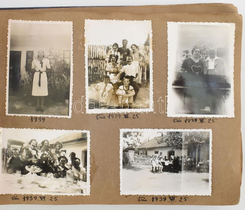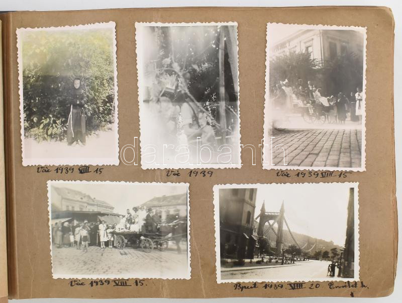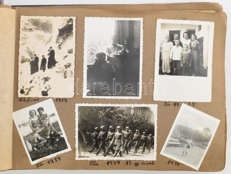 1938-1942, Fotóalbum, cca 400 darab képpel, benne családi képekkel, katonai fotóval, Duna menti települések fotóival, Vác, Felvidék, Ipolyság, Budapest, stb.