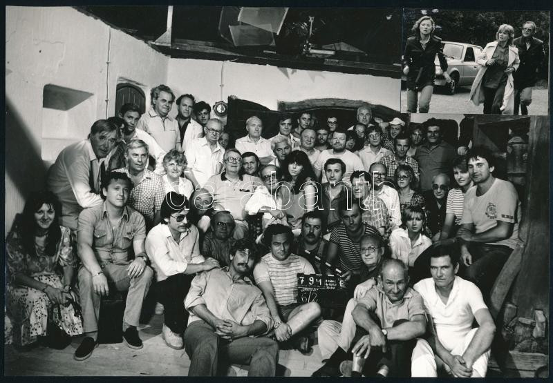 1983 Gyertek el a névnapomra c. film stábfotója (rendező: Fábri Zoltán, operatőr: Illés György), a hátoldalon pecséttel jelzett (Inkey Alice), 17x24 cm