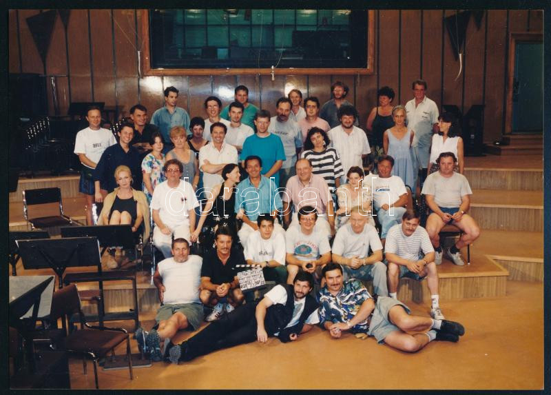 Beschreibung: 1996 Sztracsatella című magyar film stábfotója, 13x18 cm