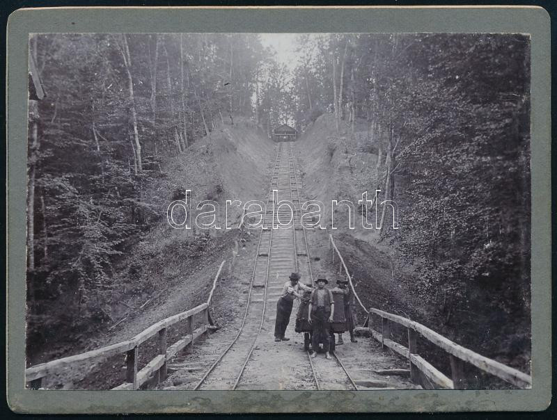 Beschreibung: ca 1900 Tataros, Brusturi (Bihar, Erdély. RO); Asphalt bányatelep siklója / mine colony funicular railway. Fotó Kartonon 12x9 cm