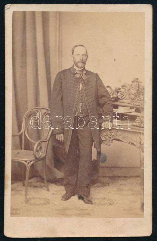 Beschreibung: cca 1860 Férfiportré, keményhátú fotó Mayer György pesti műterméből, 10,5×6,5 cm