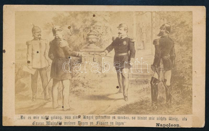 cca 1870 III. Napóleon megadja magát I. Vilmos német császárnak és Bis... https://www.darabanth.com/de/478-Fernauktion/478.0/Fotografie/Foto~2000026/cca-1870-III-Napoleon-megadja-magat-I-Vilmos-nemet-csaszarnak-es-Bismarcknak-kemenyhatu-foto-~II3262496