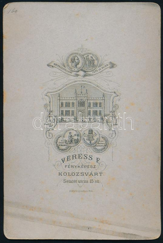 Beschreibung: cca 1885 Családi portré, keményhátú fotó Veress Ferenc kolozsvári műterméből, 16,5×10,5 cm