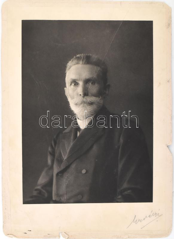 Beschreibung: cca 1920 Vargha Gyula (1853-1929) képviselő, költő, Erdélyi Mór (1866-1934) szignált fotója, sérülésekkel, fénynyomat, 22×16 cm