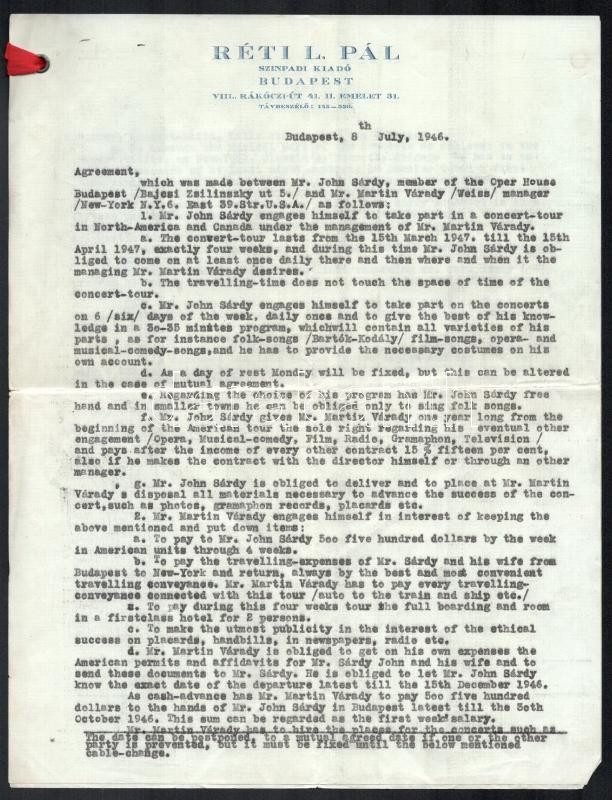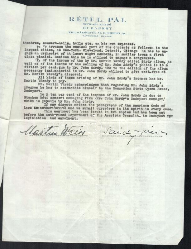 1946 Sárdy János (1902-1959) színművész amerikai fellépésére készült s... https://www.darabanth.com/de/478-Fernauktion/478.0/Kunst-Dokumente-andere-Sammelgebiete/Historische-Dokumenten-Handschriften~500021/1946-Sardy-Janos-1902-1959-szinmuvesz-amerikai-fellepesere-keszult-szerzodes-autograf-alairassal~II3260698