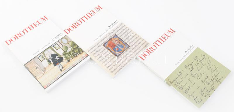 Beschreibung: Dorotheum 3 darab árverési katalógus, kéziratok, aláírások, történelmi dokumentumok, címerrajzok, papírrégiségek témában, 2010-2012