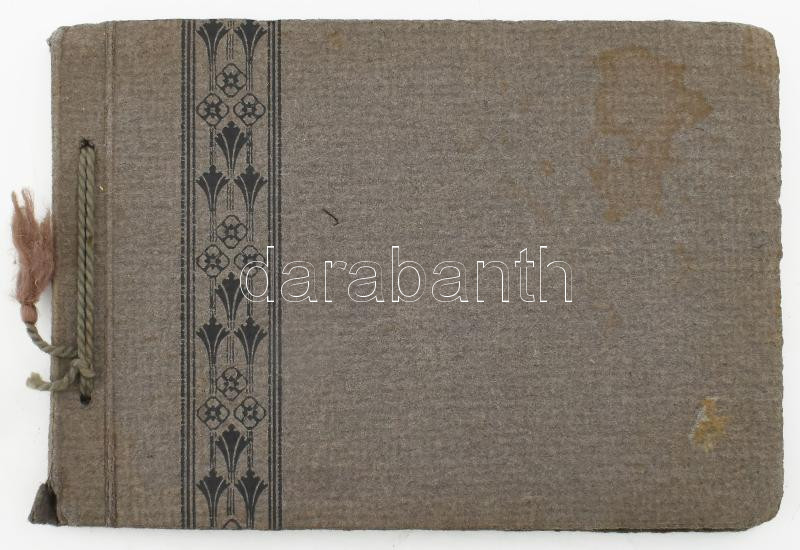 Beschreibung: 1915 Harctéri fotóalbum, benne 41 darab cca 4,5x6,5 cm-es fotóval, közte fotókkal a IV. hadsereg autósparkjáról.