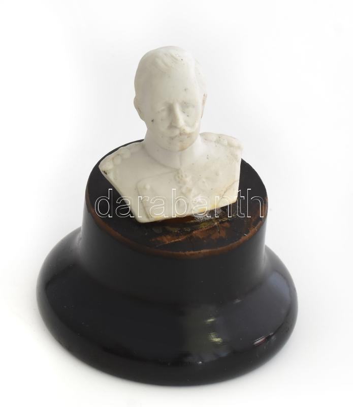 Beschreibung: cca 1915, II. Vilmos porcelán büszt, fa talapzaton, kis repedéssel, m: 10 cm