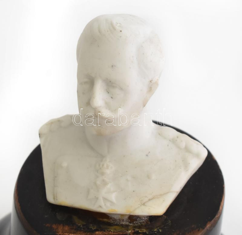 cca 1915, II. Vilmos porcelán büszt, fa talapzaton, kis repedéssel, m:... https://www.darabanth.com/de/478-Fernauktion/478.0/Kunst-Dokumente-andere-Sammelgebiete/Militaria~290/cca-1915-II-Vilmos-porcelan-buszt-fa-talapzaton-kis-repedessel-m-10-cm~II3256887