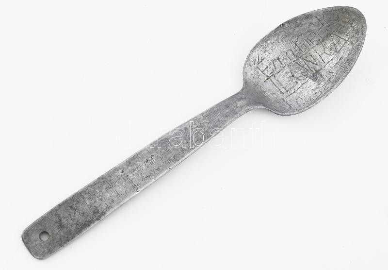 cca 1945, Hadifogoly munka, vésett alumínium kanál, h: 20 cm https://www.darabanth.com/de/478-Fernauktion/478.0/Kunst-Dokumente-andere-Sammelgebiete/Militaria~290/cca-1945-Hadifogoly-munka-vesett-aluminium-kanal-h-20-cm~II3262044