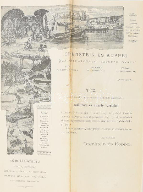 cca 1900 Orenstein és Koppel szállítható mezei vasutak gyára képes rek... https://www.darabanth.com/de/478-Fernauktion/478.0/Kunst-Dokumente-andere-Sammelgebiete/Werbungen~283/cca-1900-Orenstein-es-Koppel-szallithato-mezei-vasutak-gyara-kepes-reklam-nyomtatvany-4p-hajtva-~II3262218