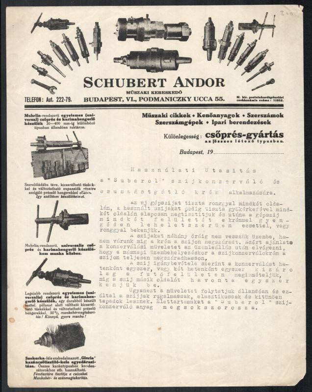 cca 1930 Schubert Andor műszaki kereskedő képekkel illusztrált használ... https://www.darabanth.com/de/478-Fernauktion/478.0/Kunst-Dokumente-andere-Sammelgebiete/Werbungen~283/cca-1930-Schubert-Andor-muszaki-kereskedo-kepekkel-illusztralt-hasznalati-utasitasa-a-Suberol~II3246930