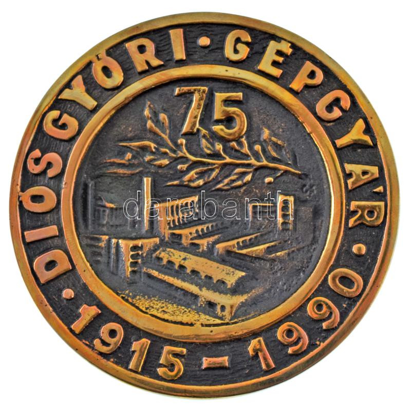 1990. "75 éves Diósgyőri Gépgyár" egyoldalas bronz plakett eredeti "DIGÉP" tokban (82mm) T:UNC