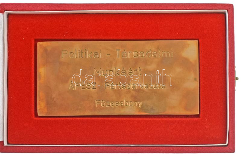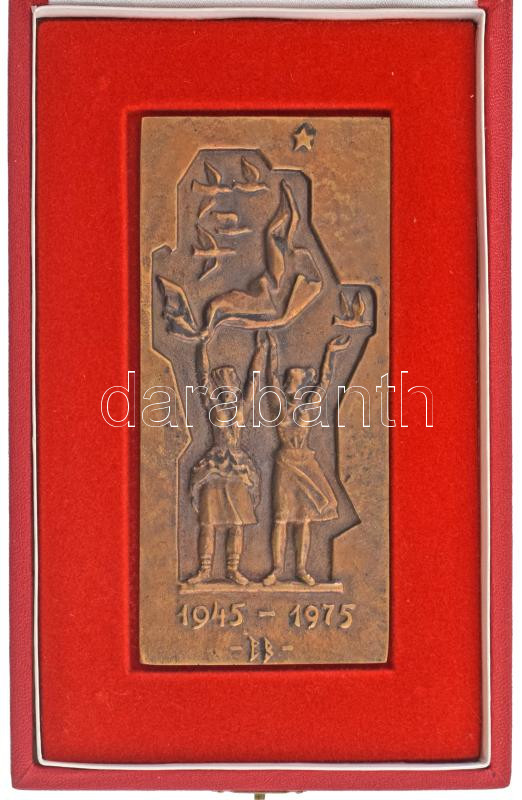 Búza Barna (1910-2010) ~1975. "Béke - Barátság" egyoldalas bronz plakett eredeti tokjában (135x62mm) T:AU