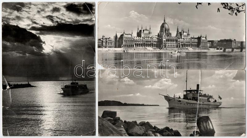 3 db modern magyar nagyalakú város képeslap vegyes minőségben: Balaton, Budapest (Képzőművészeti Alap Kiadóvállalat) / 3 modern Hungarian big size town-view postcards in mixed quality