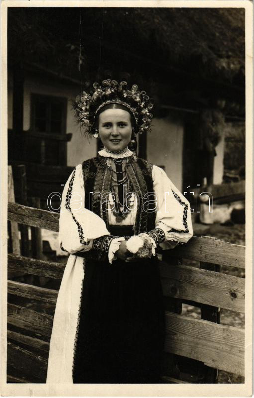 Marótlaka, Morlaka, Morlaca (Kolozs); fiatal lány népviseletben, erdélyi folklór / Fetita in costum national / Transylvanian folklore. Foto orig. J. Fischer 1935 (fa)