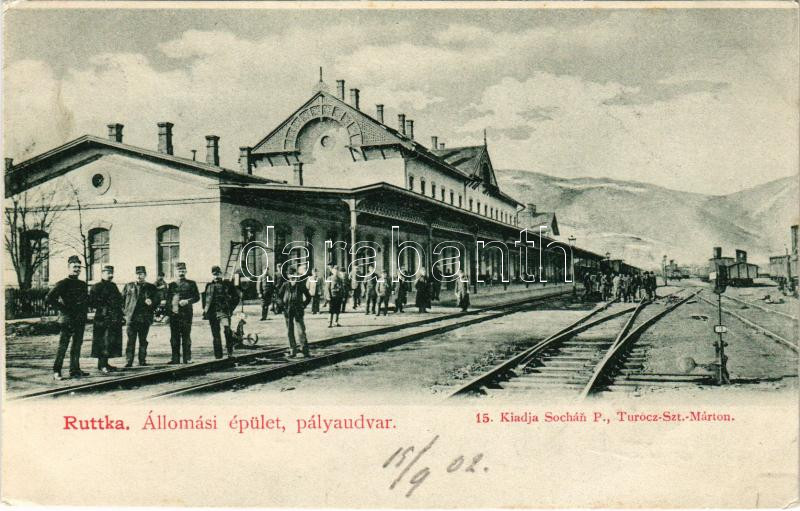 1902 Ruttka, Vrútky; Pályaudvar, vasútállomás, vonat. Sochán P. kiadás... https://www.darabanth.com/de/479-Fernauktion/479.0/Ansichtskarten/Slowakei~2000007/1902-Ruttka-Vrutky-Palyaudvar-vasutallomas-vonat-Sochan-P-kiadasa-railway-station-tr~II3271563