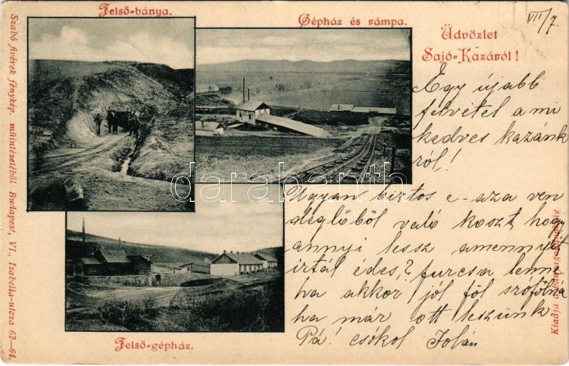 1901 Sajókaza, Sajó-Kaza; Felső bánya, felső gépház, gépház és rámpa, iparvasút. A bányagondnokság kiadása, Szabó fivérek fényképészeti műintézetéből (EK)
