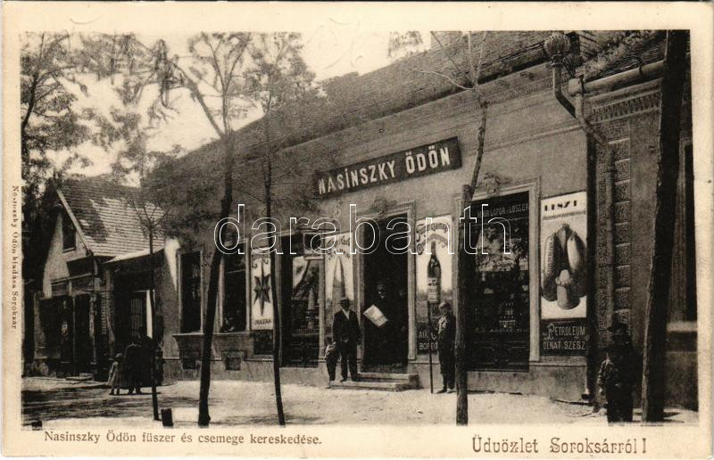 1903 Budapest XXIII. Soroksár, Nasinszky Ödön fűszer és csemege keresk... https://www.darabanth.com/de/479-Fernauktion/479.0/Ansichtskarten/Ungarn~2000005/1903-Budapest-XXIII-Soroksar-Nasinszky-Odon-fuszer-es-csemege-kereskedes-uzlete-es-sajat-~II3264082
