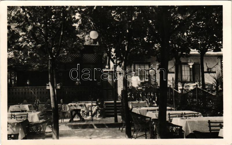 Beschreibung: Budapest XII. Farkasvölgy, Ördögorom csárda kertje, pincér. Az 59-es villamos végállomásánál