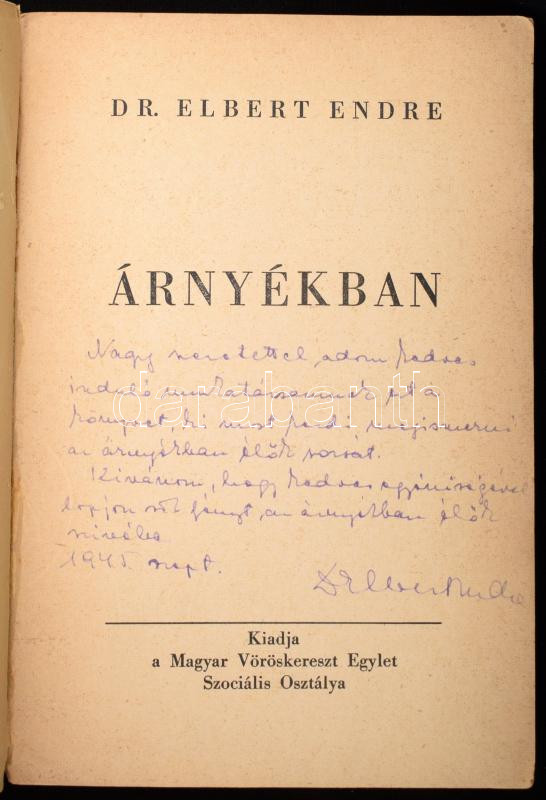 Elbert Endre: Árnyékban. DEDIKÁLT! Bp.,[1940.],Magyar Vöröskereszt Egy... https://www.darabanth.com/de/479-Fernauktion/479.0/Bucher/Bucher-Andere-kuriositaten~1000037/Elbert-Endre-Arnyekban-DEDIKALT-Bp-1940-Magyar-Voroskereszt-Egylet-Szocialis-Osztalya-148~II3271688