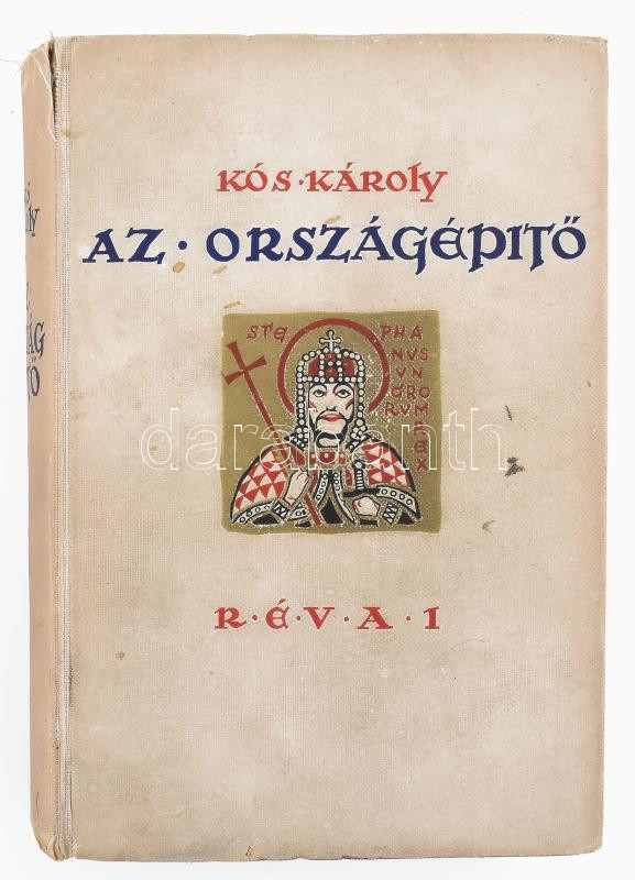 Kós Károly: Az országépítő. Történeti regény. Bp., 1936, Révai, 438 p. Kiadói festett, illusztrált egészvászon kötés, kissé koszos, sérült borítóval, sérült könyvtesttel. Dr. Somogyi-Tóth J. ex librisével.
