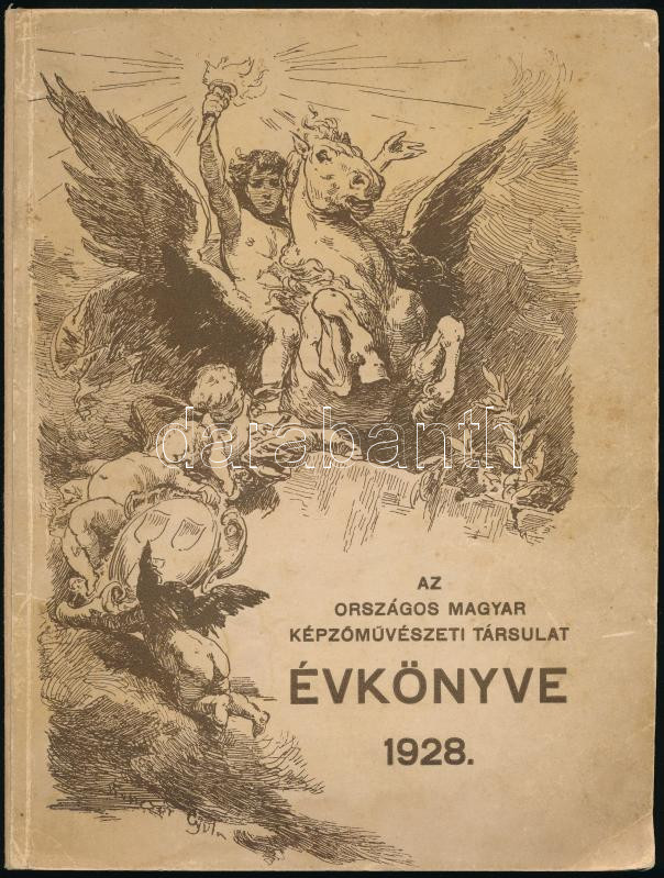 Az Országos Magyar Képzőművészeti Társulat évkönyve az 1928. évre. A rendes tagok 1928. évi tagilletménye. Bp., 1928, Országos Magyar Képzőművészeti Társulat, VII+(1)+208 p. Gazdag fekete-fehér képanyaggal illusztrálva. Kiadói papírkötés, javított gerinccel, kissé viseltes, foltos borítóval, néhány kissé foltos lappal.