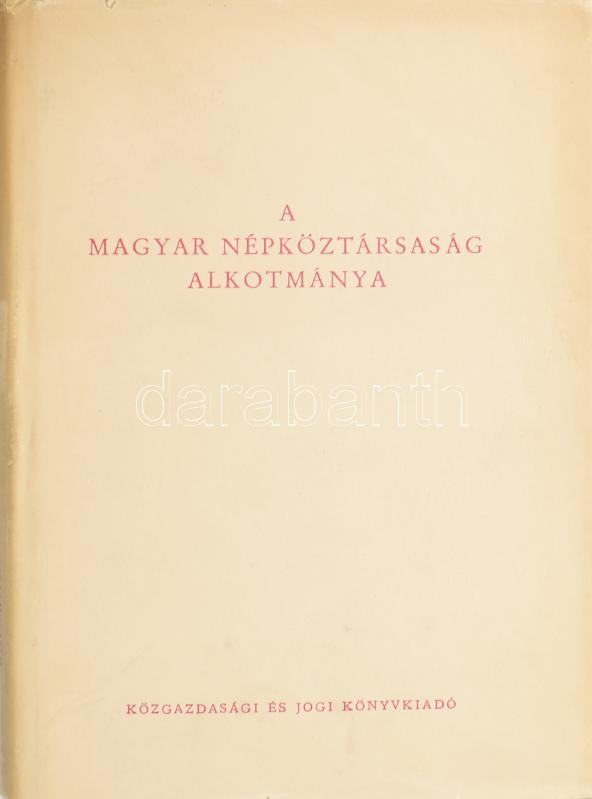 Beér János - Kovács István: A Magyar Népköztársaság alkotmánya. Kádár Jánosnak DEDIKÁLT! Bp., 1959, Közgazdasági és Jogi Könyvkiadó. Kiadói egészvászon kötés, papír védőborítóval, kissé kopottas állapotban.