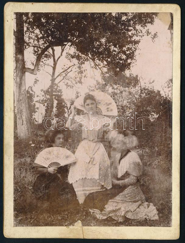 cca 1900 Lányok legyezővel, keményhátú fotó Haller Ferenc szatmári műt... https://www.darabanth.com/de/479-Fernauktion/479.0/Fotografie/Foto~1000001/cca-1900-Lanyok-legyezovel-kemenyhatu-foto-Haller-Ferenc-szatmari-mutermebol-serulessel-~II3269383
