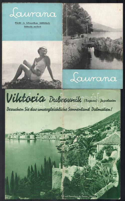 Horvátország, 2 db idegenforgalmi prospektus: Laurana fürdő és klimatikus üdülőhely Abbazia mellett, magyar nyelvű + Viktoria Dubrovnik (Ragusa) Jugoslavien, német nyelvű